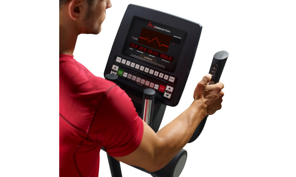 Профессиональный эллептический тренажер Freemotion e10.6. Узкое размещение ног на широких эргономичных педалях создает более естественное движение на нем. Две пары датчиков частоты сердечных сокращений встроены в двойные поручни и отображают показания на консоли в режиме реального времени. Низкое расположение педалей делает его удобным для людей с ограничениями в мобильности. Интуитивно понятное управление делает его доступным для использования.